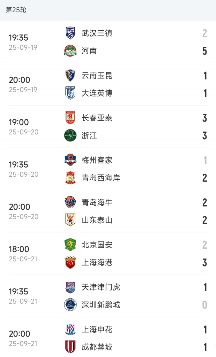 本轮赛果